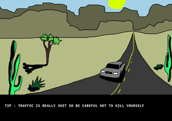 in this short rage game you drive from Seattle to Tucson to deliver stolen goods.